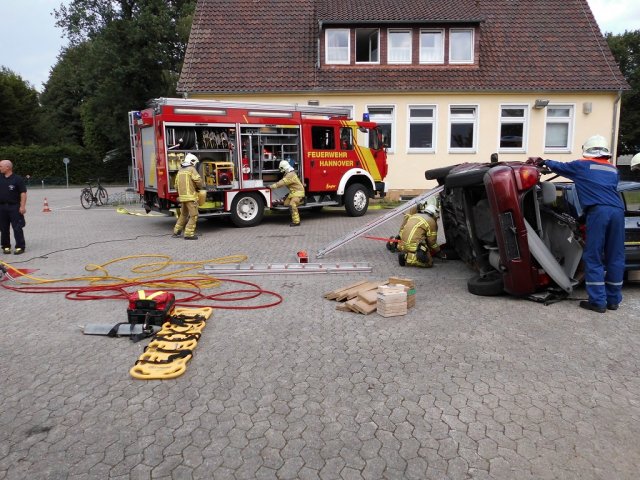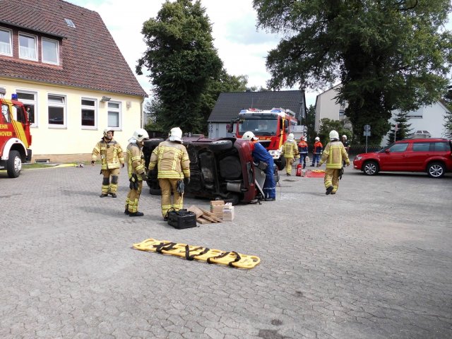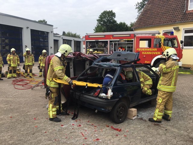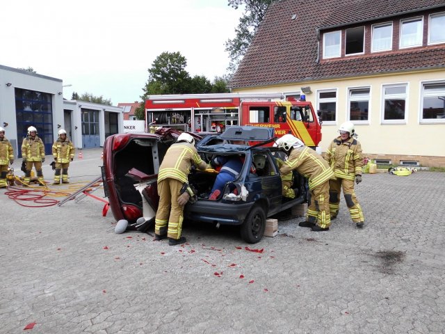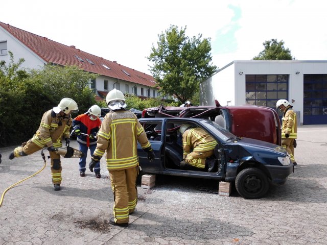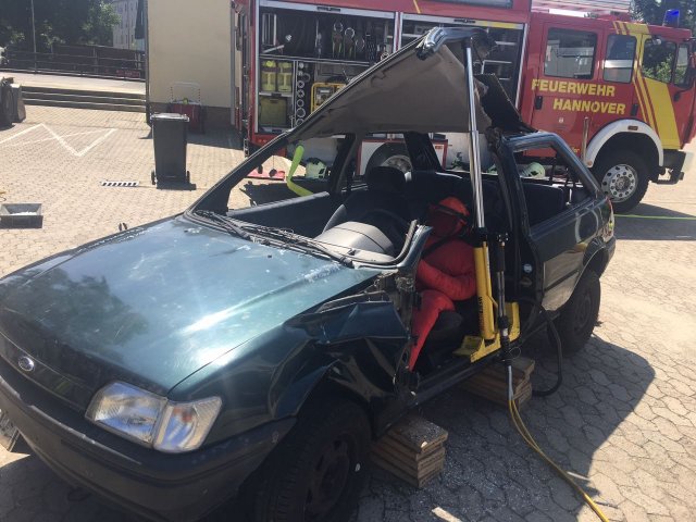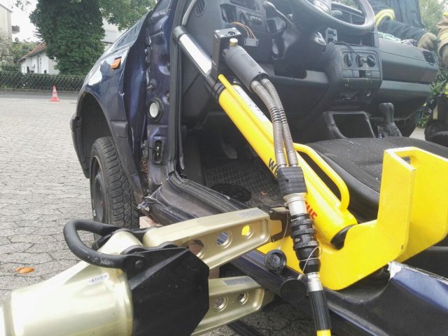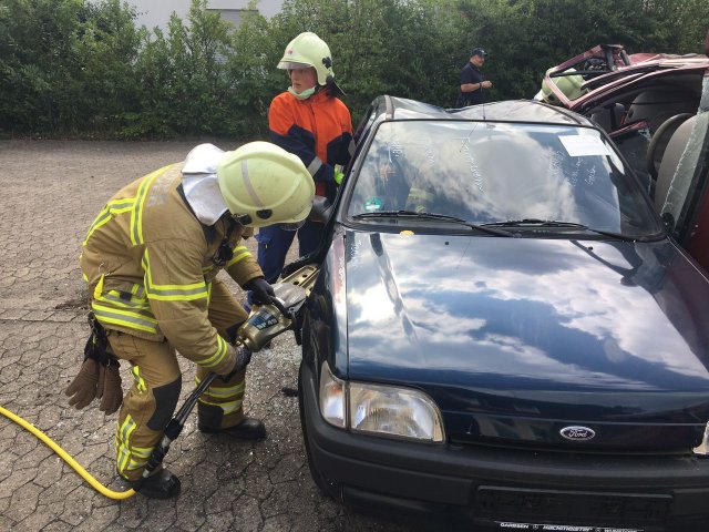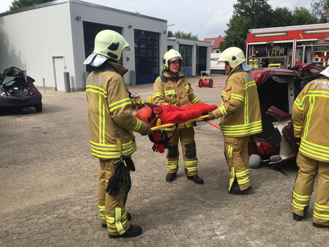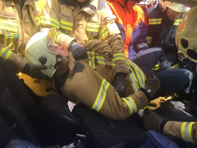 Beim Einsatz von hydraulischen Spreiz- und Schneidgerät, sowie einem Rettungszylinder musste genau darauf geachtet werden, wie man sicher eine Befreiungsöffnung für den Verletzten schafft. Nachdem ein Zugang geschaffen wurde, musste der Patient schonend mit dem Spineboard, einem stabilen Kunststoffbrett, gerettet werden, um ihn dem Rettungsdienst übergeben zu können.