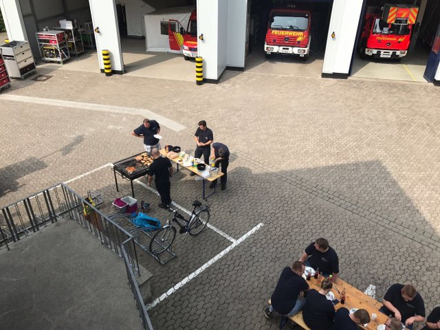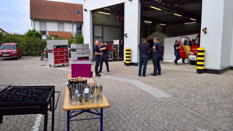 Anschließend konnten sämtliche Einsatzmittel wie die Melderkräder, der GW-FüKom, der Einsatzleitwagen (ELW) 2-1 und der ELW 3-4 im aufgebauten und einsatzbereiten Zustand begutachtet werden. Es wurden zudem viele Fachgespräche geführt und sich über Unterschiede, Erfahrungen und Geschichten beider Feuerwehren ausgetauscht. Allerdings gilt auch für Fernmelder: ohne Mampf nur schwieriger Kampf! Weshalb wir, im angenehmeren Teil, selbstverständlich kühle Getränke und ein leckeres Grillbuffet anboten.