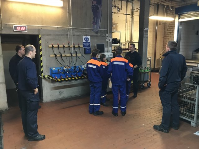 Heute stand ein besonderer Dienst auf dem Dienstplan. Eine halbe Stunde früher als üblich trafen wir uns am Feuerwehrhaus um dann zur Feuer- und Rettungswache 3, welche sich in der Südstadt befindet, zu fahren. Vor Ort wurden wir von drei Kameraden der Berufsfeuerwehr freudig empfangen.