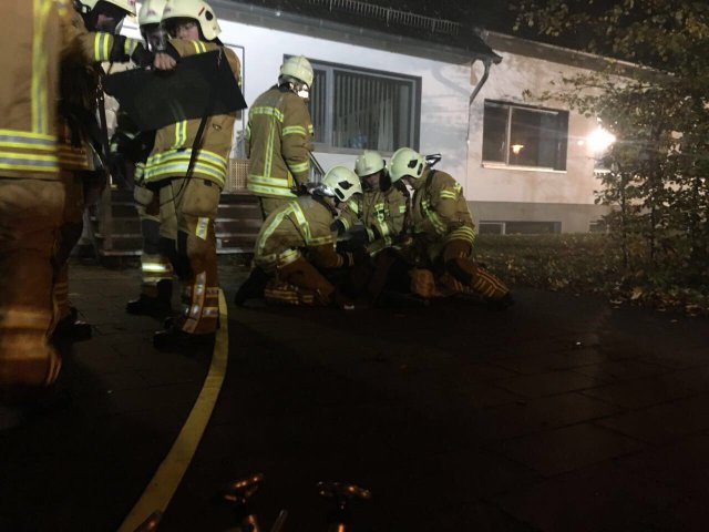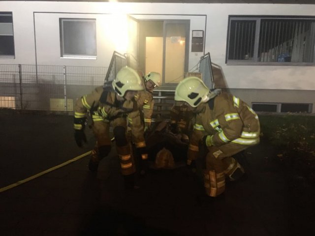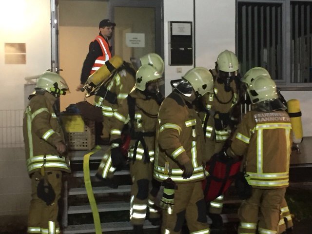 Zum Meldebild, einer Rauchentwicklung aus Keller, rückte das Vinnhorster Löschgruppenfahrzeug (LF) 16/12 zum Rathausplatz in Vinnhorst ab. Nach Erkundung der Einsatzstelle durch den Fahrzeugführer und seinem Melder, konnte neben der starken Rauchentwicklung aus dem Kellerbereich des Gebäudes, im rückwärtigen Bereich hinter dem eigentlichen Brandobjekt, ein Entstehungsbrand an einem verunfallten PKW ausgemacht werden. Der Gruppenführer ließ daraufhin die Alarmstufe erhöhen. Nun rückten auch die anderen Einheiten zur Einsatzstelle ab. Unser LF 20 nahm die Brandbekämpfung am PKW vor, wobei im weiteren Verlauf noch eine eingeklemmte Person erkannt wurde. Das Hilfeleistungslöschfahrzeug (HLF) 20 der Ortsfeuerwehr Stöcken wurde dann hinzugezogen um die eingeklemmte Person zu befreien. Parallel dazu wurde der Fahrer des PKW, welcher offensichtlich aus seinem kollidierten PKW flog, im nahegelegenen Mittellandkanal entdeckt. In Windeseile wurde das Schlauchboot des LF 20 in Betrieb genommen und zu Wasser gelassen, um die Person aus dem kalten Gewässer zu holen. Rettungskräfte der Johanniter versorgten die geretteten Personen anschließend in bereitgestellten Rettungswagen. Im Brandobjekt selbst gingen währenddessen Trupps unter Atemschutz zur Brandbekämpfung und Menschenrettung in den Kellerbereich vor. Es waren mehrere Personen in dem Gebäude gemeldet. Nach und nach wurden diese von den eingesetzten Trupps unseres LF 16 sowie des LF 20 der Ortsfeuerwehr Stöcken erfolgreich gerettet. Nachdem sämtliche Personen gefunden und der fiktive Brandherd „gelöscht“ wurden, war die Übung beendet.