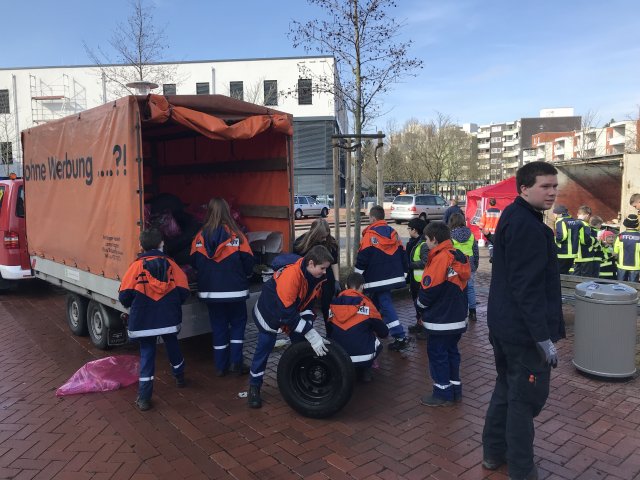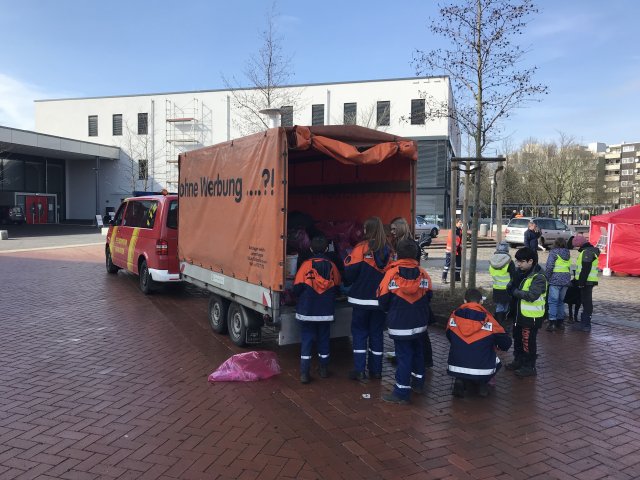 “putzmunter” machten sich also auch unsere Brandschützer von morgen, bewaffnet mit Müllsack und Handschuhen, auf den Weg. Anlaufpunkte waren unter anderem der Vorplatz des vinnhorster Bahnhofes, der Vinnhorster Weg, sowie der Burgweg. Neben alten Autoreifen, jeder Menge Unrat und Verpackungsmaterial, sammelten wir auch einen Kühlschrank ein. Des Weiteren fanden wir an verschiedenen Orten insgesamt 19 Einkaufswagen eines ortsansässigen Supermarktes. Natürlich nahmen wir diese mit und brachten sie ihrem rechtmäßigen Besitzer zurück. Nach einer kurzen Pause ging es dann mit vollem Anhänger zur Sammelstelle am Mühlenberger Markt. Dort wurden alle Müllsäcke und Fundstücke abgeladen. Es kamen allein durch die Stadtjugend- und Kinderfeuerwehr über 400 Säcke zusammen. Natürlich durften im Anschluss eine warme Mahlzeit und ein Getränk nicht fehlen. Zurück am Feuerwehrhaus wurden Fahrzeuge und Anhänger gesäubert. Ein besonderer Dank gilt unserer Bezirksbürgermeisterin Edeltraut Geschke, die uns wie jedes Jahr, tatkräftig bei dieser Aktion unterstützt hat.