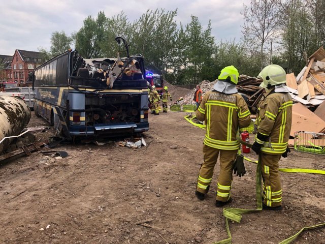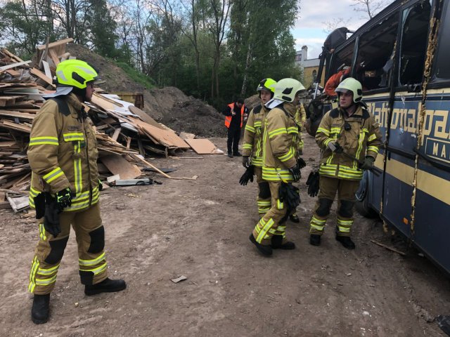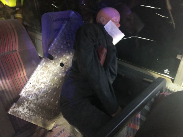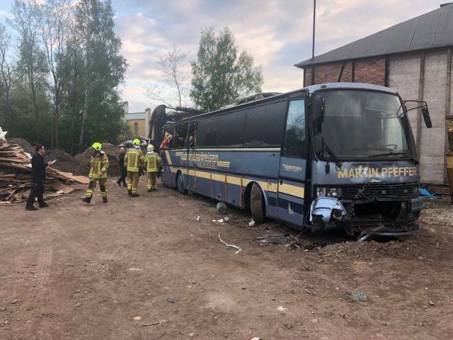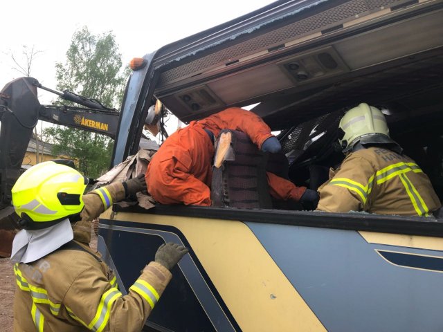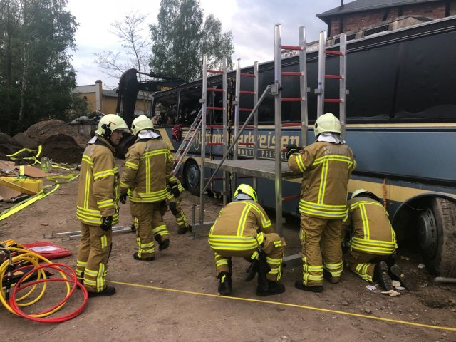 Mehrere eingeklemmte Personen bei Busunfall - Einsatzübung
