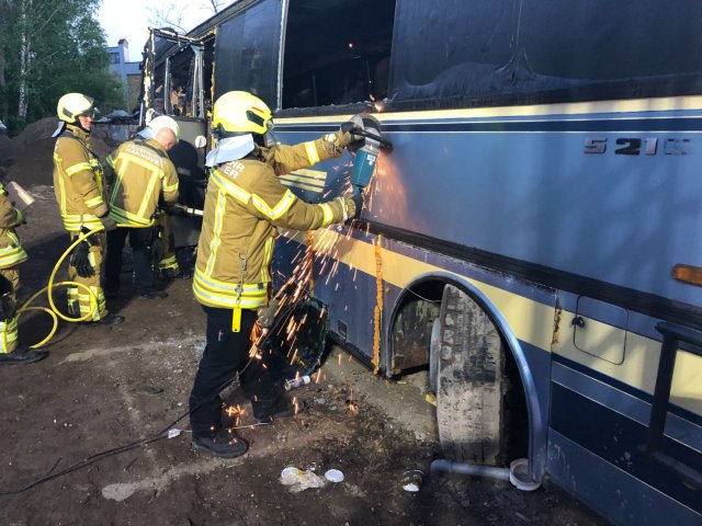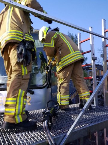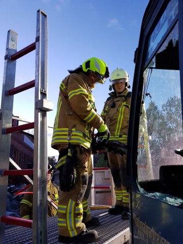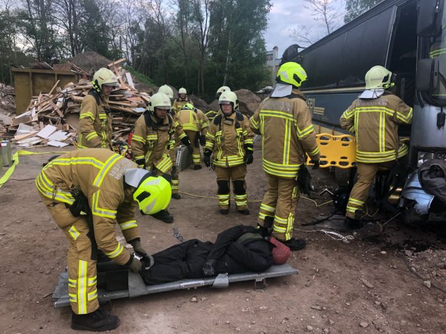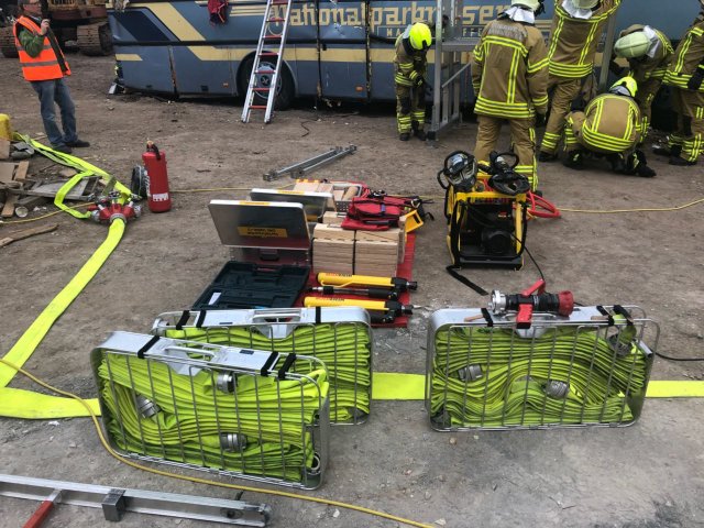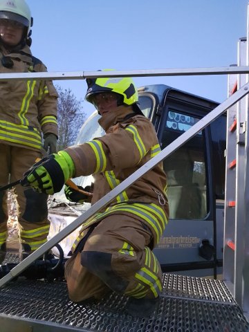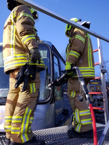 Nach erfolgreicher Rettung und Bergung aller Personen beendete der Übungsleiter die Übung. Im Anschluss an eine kurze Nachbesprechung konnte jeder noch einmal den Umgang mit dem hydraulischen Rettungsgerät am „verunfallten“ Bus üben.