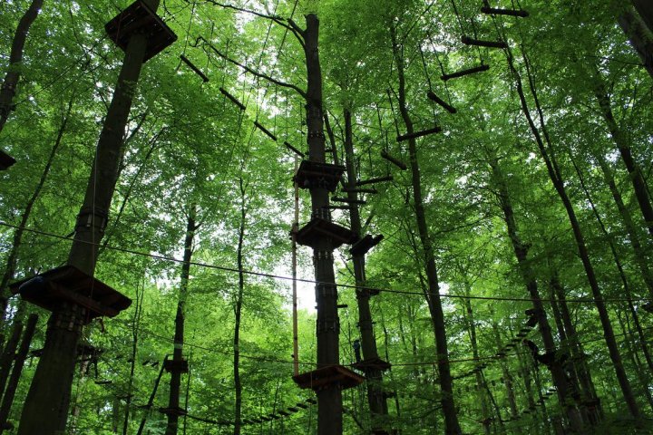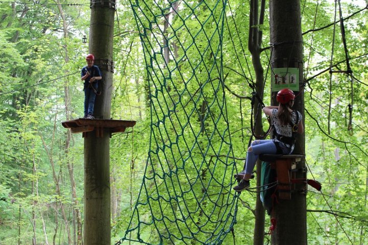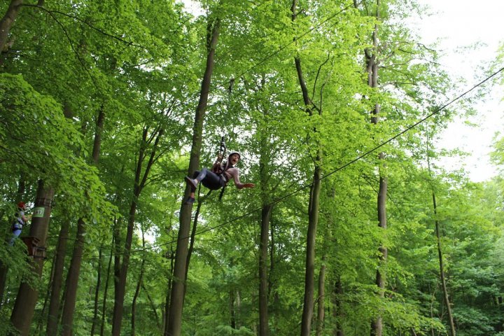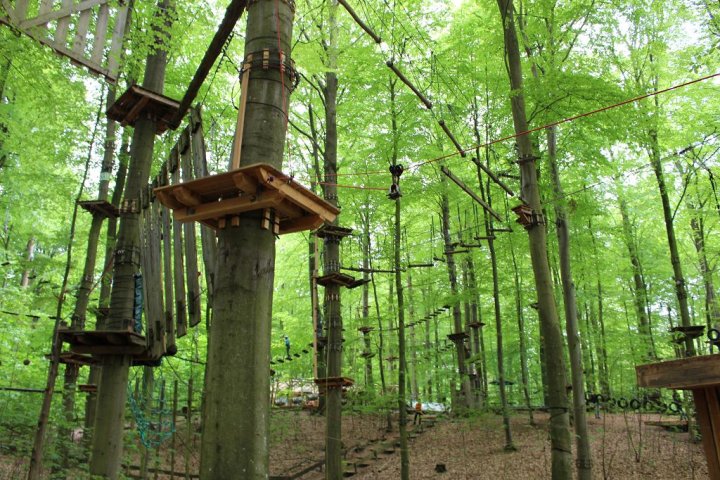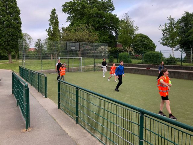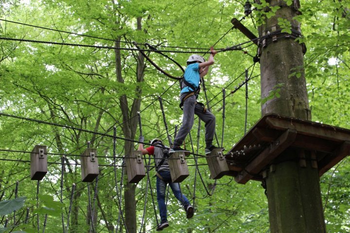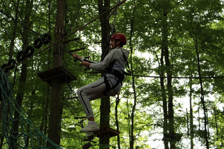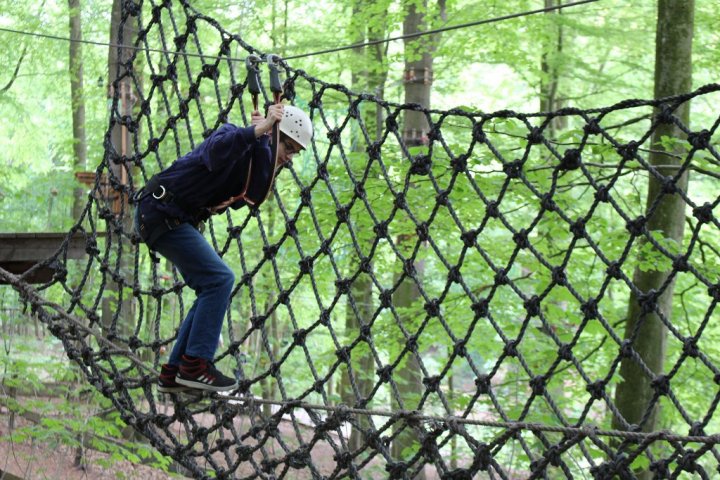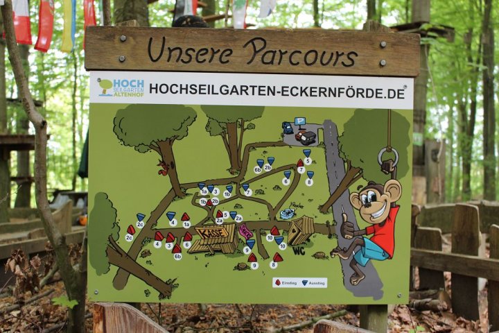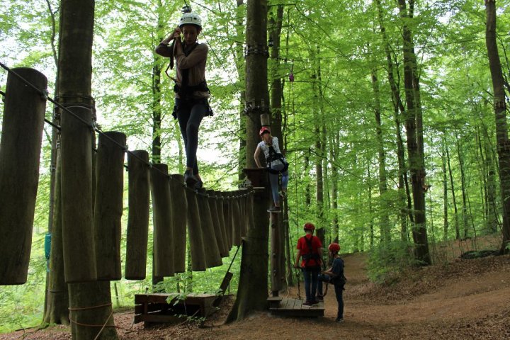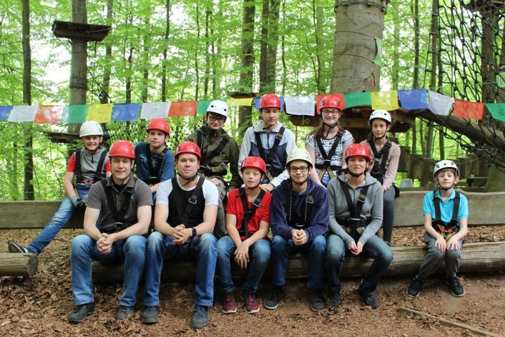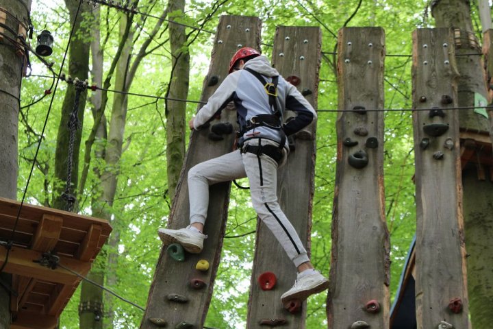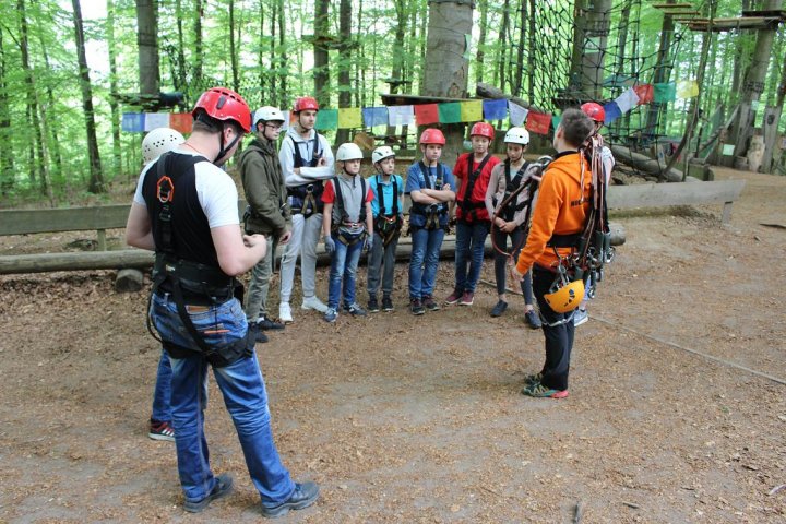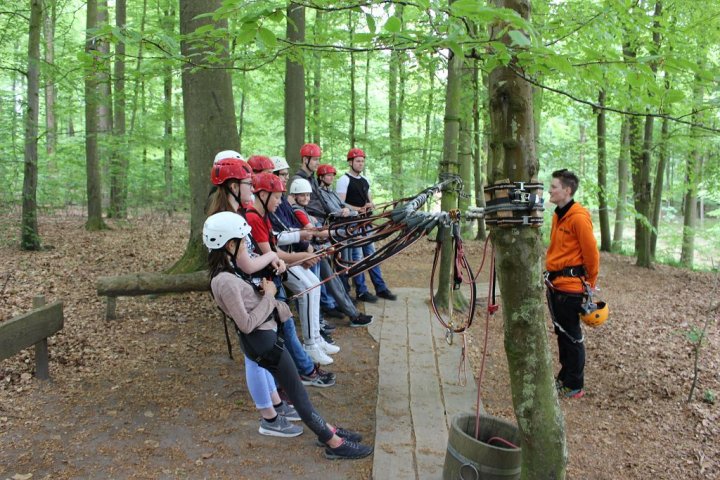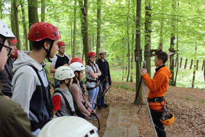 Glücklicherweise kamen wir ohne große Verzögerungen an unserem Zwischenstopp an. Wir besuchten den Hochseilgarten in Altenhofen / Eckernförde. Insgesamt gab es dort 14 abwechslungsreiche Parcours mit unterschiedlichen Schwierigkeitsstufen und Höhen (bis 25m!). Nach knapp zwei Stunden Kletterspaß ging es dann weiter zum Ziel, der Stadt Schleswig. Übernachtet wurde in der dortigen Jugendherberge. Dort angekommen gab es Abendbrot. Im Anschluss wurden die Zimmer bezogen und jeder konnte sich seinen Schlafplatz einrichten. Danach spielten wir noch circa eine Stunde Fußball, bevor es dann nach einer erfrischenden Dusche ins Bett ging.