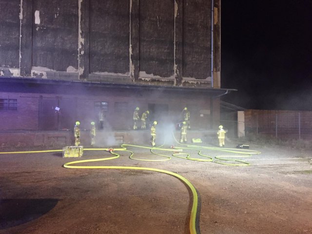 Nach kurzer Zeit erreichte der mit 36 Kameraden besetzte Löschzug mit 5 Fahrzeugen den Einsatzort. Bei einer missglückten Drogenrazzia kam es zu einer Auseinandersetzung, im Kellergeschoss wurde ein Feuer gelegt. Mehrere Personen wurden auf zwei Etagen im dichten Rauch vermisst. Eine weitere Person hängt im 5. OG bewusstlos über der Fensterbank, vor dem Gebäude brennt ein PKW. Der Zugführer erkundete mit seinen Fahrzeugführern die Einsatzstelle, die Aufgabenverteilung stand schnell fest. Die Drehleiter rettete die Person aus dem 5. OG, während die Besatzungen vom HLF den Innenangriff durchführten. Mehrere Trupps unter schwerem Atemschutz durchsuchten das Erd- und Kellergeschoss des alten Getreidespeichers. Die Besatzung des vinnhorster LF löschte den brennenden PKW und unterstützte im Anschluss mit drei Atemschutztrupps die Besatzung des HLF bei der Menschenrettung und Brandbekämpfung. Die Besatzung des dritten LF stellte die Wasserversorgung her und betreute die verletzten Personen auf der Patientenablage. Die Suche im Kellergeschoss gestaltete sich sehr aufwendig, da das Gebäude über Grundmaße von ca. 20x80 m verfügt. Vier der eingesetzten Trupps hatten allerhand damit zu tun 90m C-Schlauch, störungsfrei im Gebäude zu verlegen. Die Absprache unter den eingesetzten Kameraden funktionierte hervorragend, sodass alle vermissten Personen schnell gefunden wurden. Zwei weitere Trupps gingen mit Sicherungsleinen in das Gebäude. Leinensuchsysteme waren schwer umsetzbar, da die ganze Etage über unzählige Stützpfeiler verfügte. Nachdem alle Personen gerettet und das Feuer gelöscht war, wurde die Übung beendet. Unsere Zug- und Gruppenführer kamen zu dem Ergebnis, dass die gute Ausbildung innerhalb der Ortsfeuerwehr zum Erfolg geführt hat.